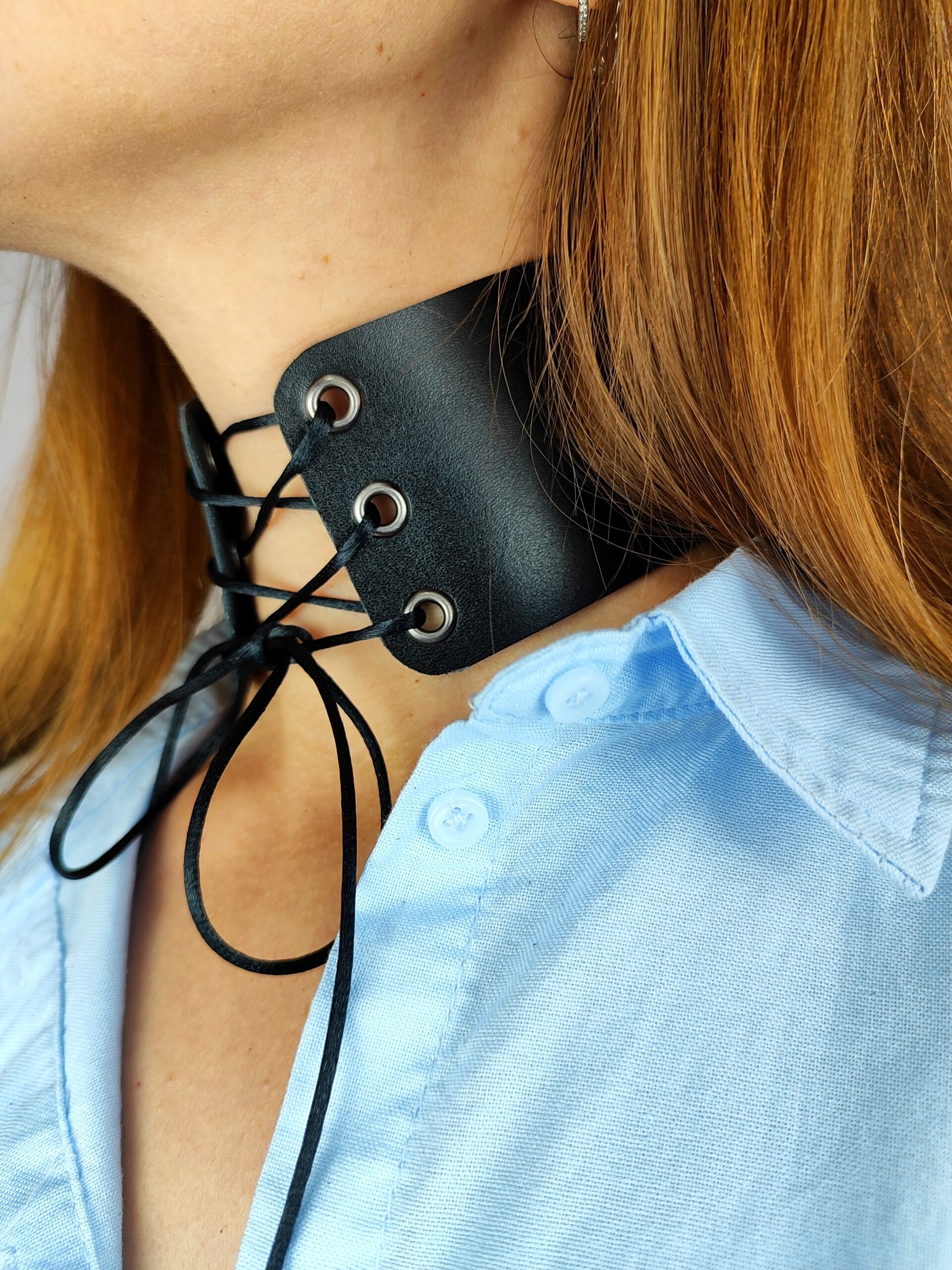 Genuine Leather Lace-Up Choker: Edgy Goth Accessory