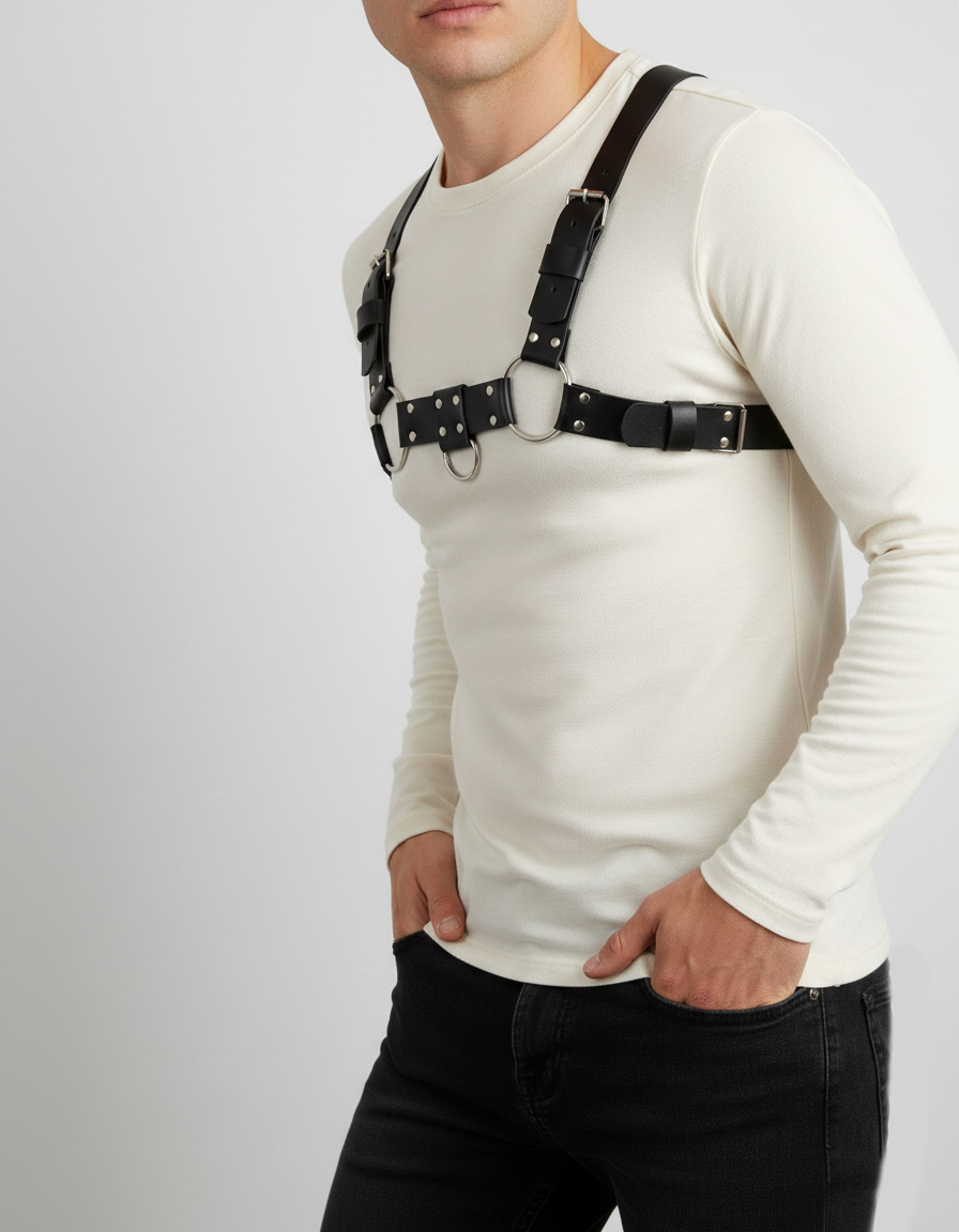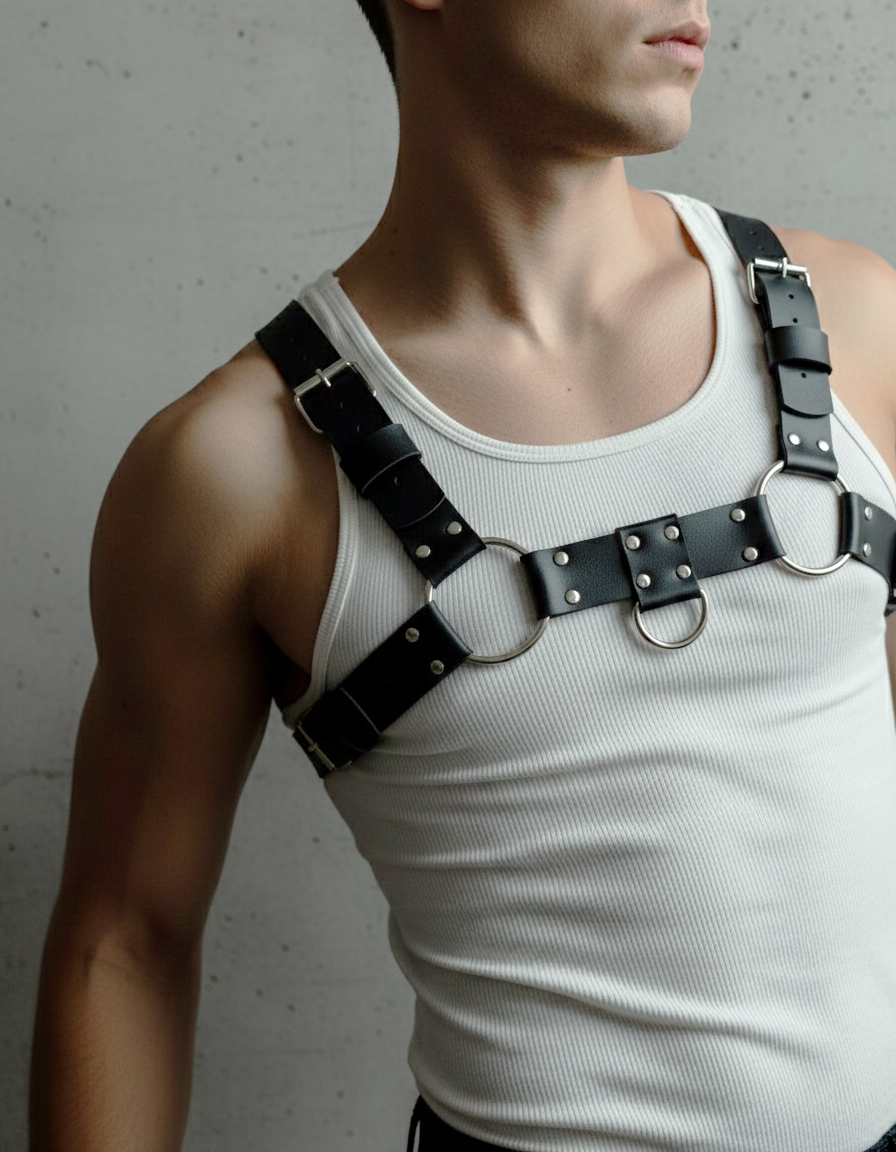 Genuine Leather Wide Chest Harness – Men’s Brutal Style