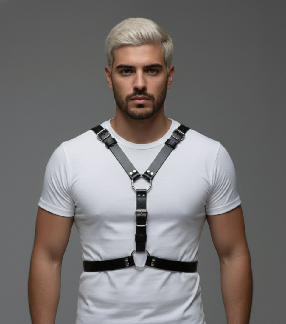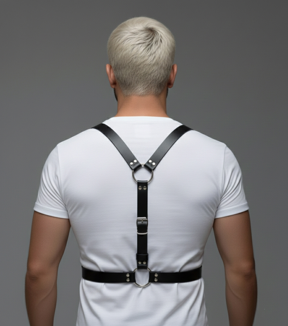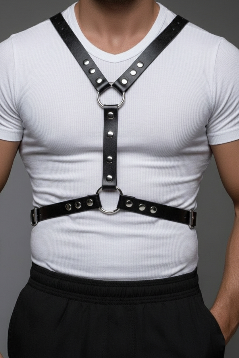 This versatile leather harness accessory complements alternative, modern, and street fashion styles and is intended for visual styling and outfit coordination.