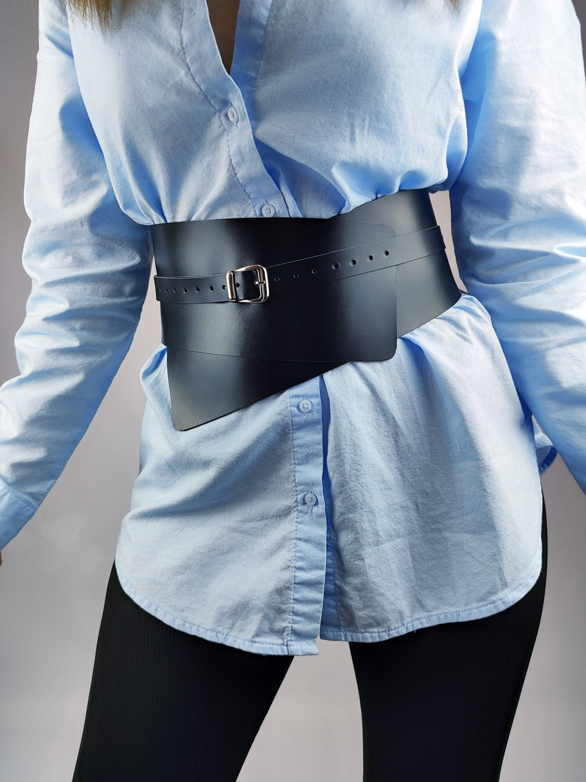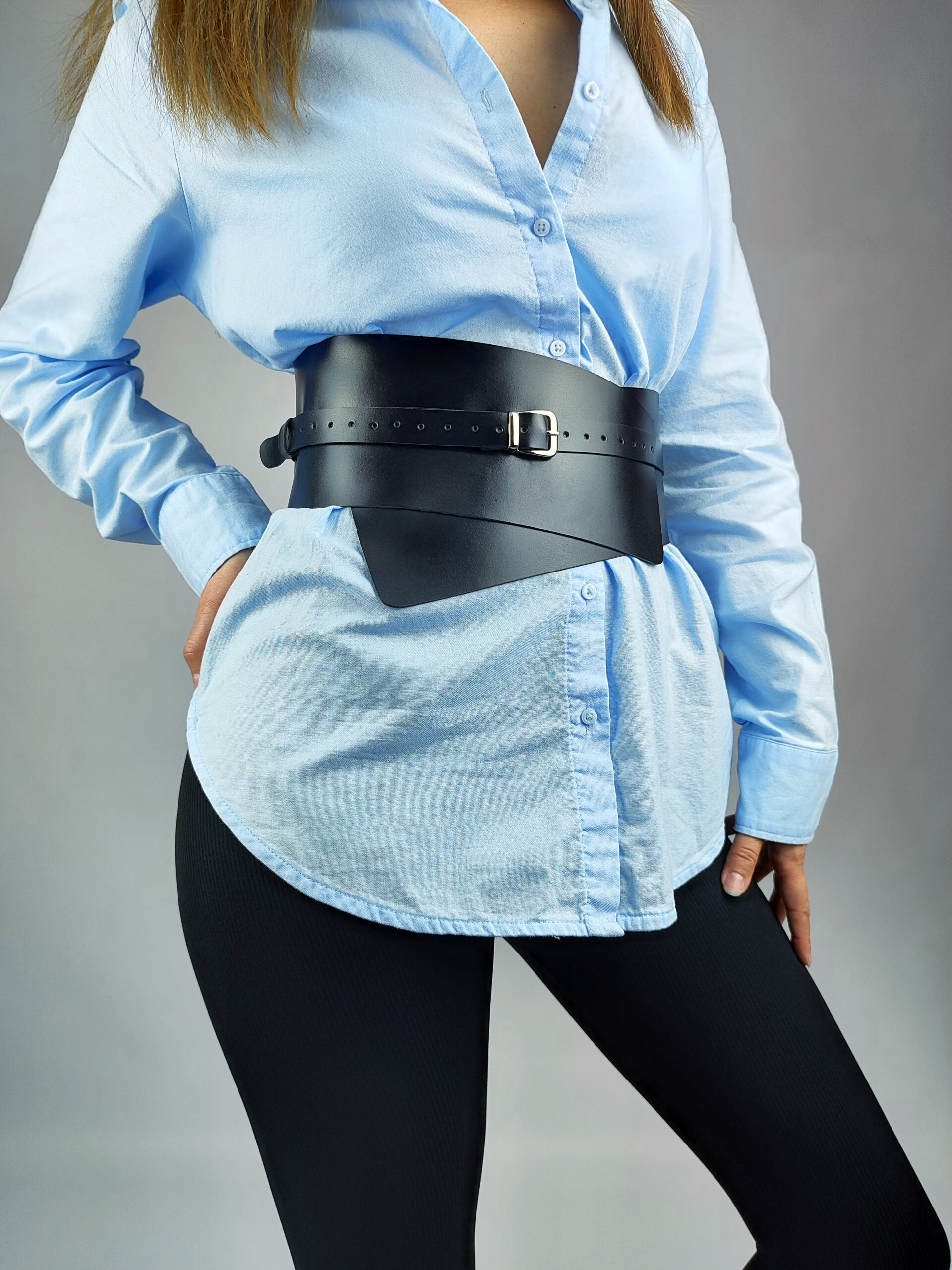 The Handmade Corset Belt for Women is a stylish and modern accessory designed for fashion-forward individuals. Made from high-quality leather , this under bust corset belt features a wide silhouette that perfectly accentuates your waistline. With a hardware color nickel (silver), this wrap belt adds a touch of contemporary flair to any outfit.