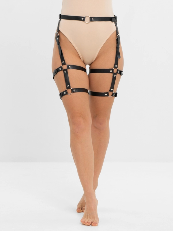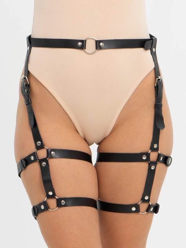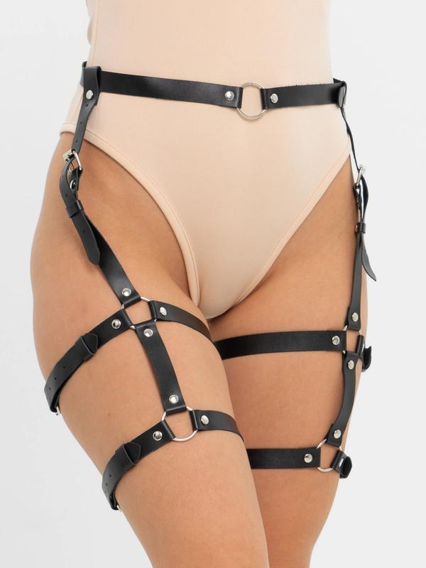 This leather harness accessory complements modern, alternative, and street fashion styles and is intended for visual styling and outfit coordination purposes only.