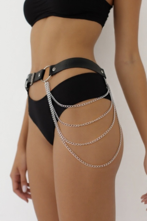 Handmade Leather Harness Fashion Accessory with Chain Details