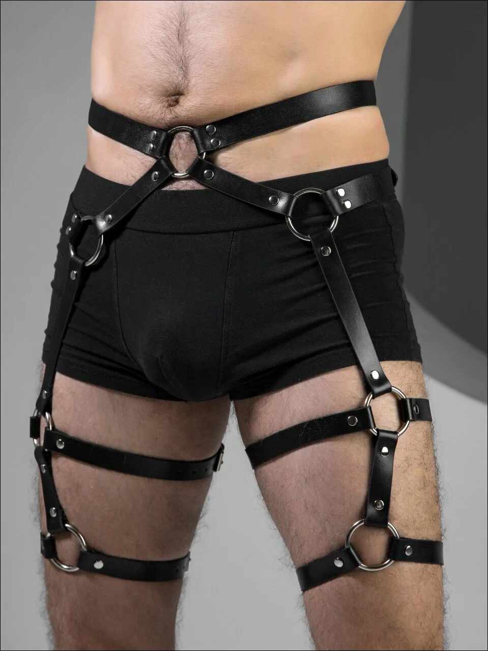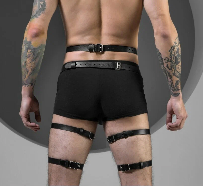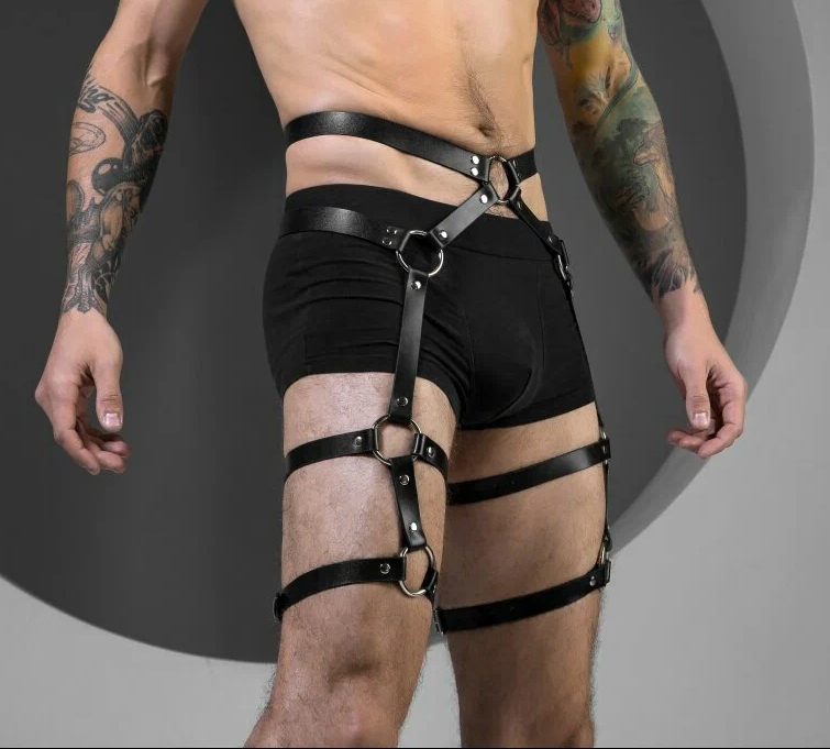 This leather harness accessory complements modern, alternative, and street fashion styles and is intended for visual styling and outfit coordination only.