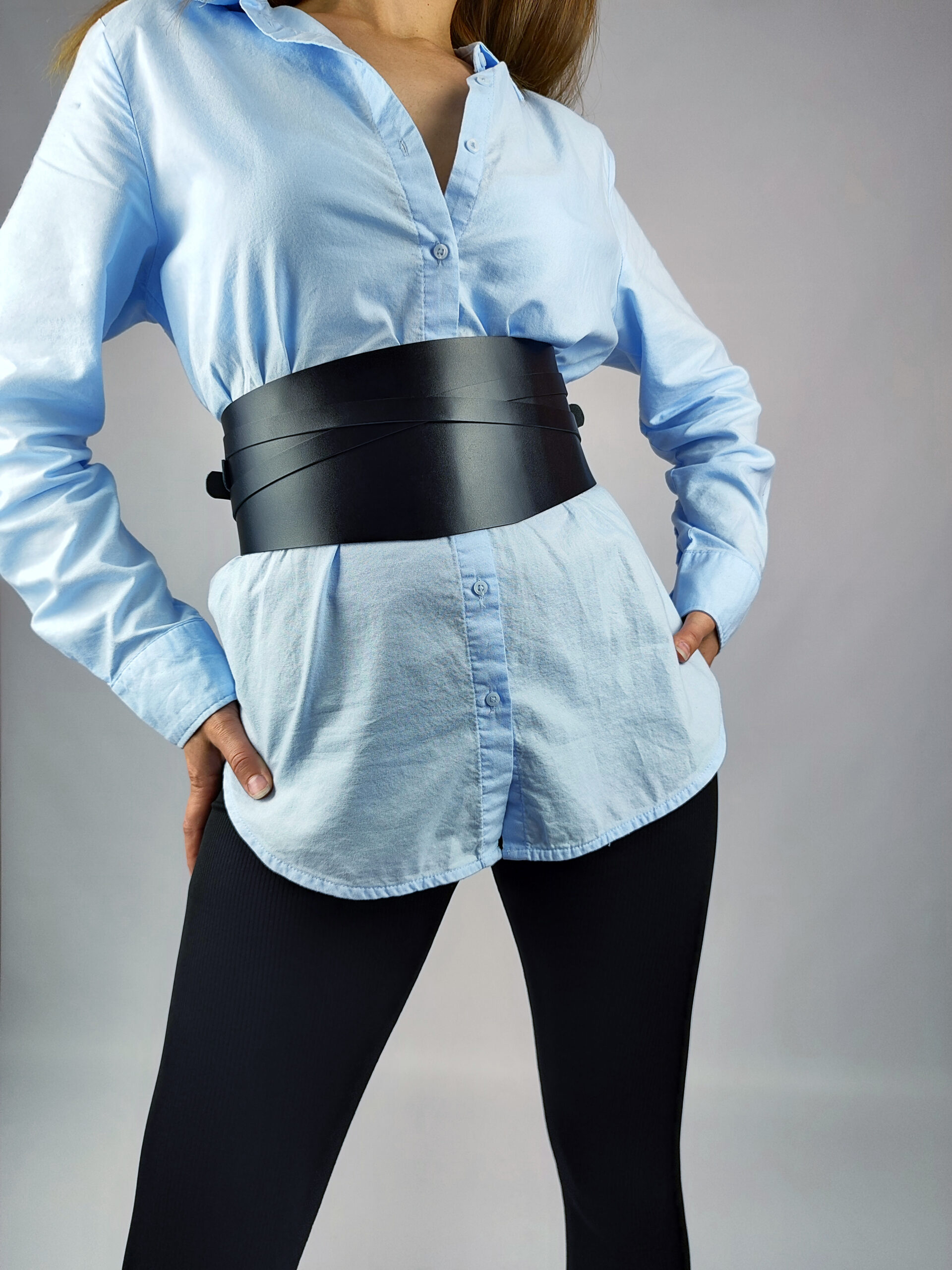 The belt is made from high-quality leather, ensuring durability and a luxurious look and feel. It is also available in natural leather for those who prefer a more authentic material. The wide design of the belt adds a touch of elegance and sophistication to any outfit, making it suitable for both casual and formal occasions.